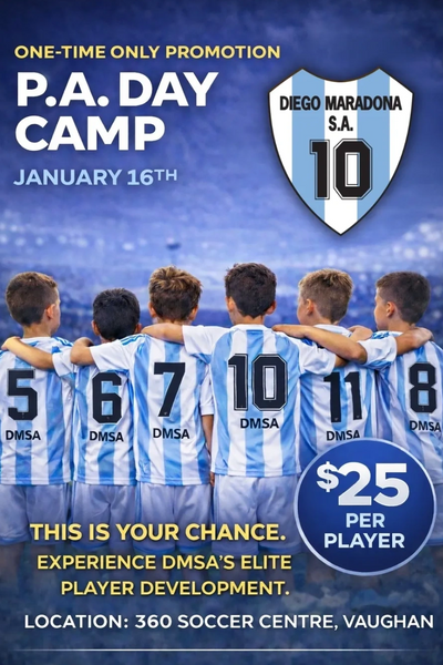 The Diego Maradona Soccer Academy is thrilled to announce that, for the first time ever, we will be hosting a special PA Day two-hour training session on January 16th.